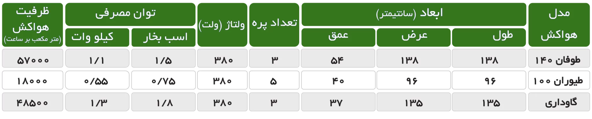استفاده از هواکش با عملکرد بالا برای داشتن تهویه مناسب ضروری است. هواکش پریا (تست شده در تونل باد) با بالاترین ظرفیت معادل ۵۷هزار متر مکعب بر ساعت، بهترین شرایط تهویه را فراهم میکند.